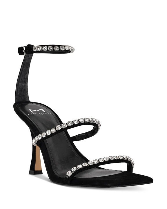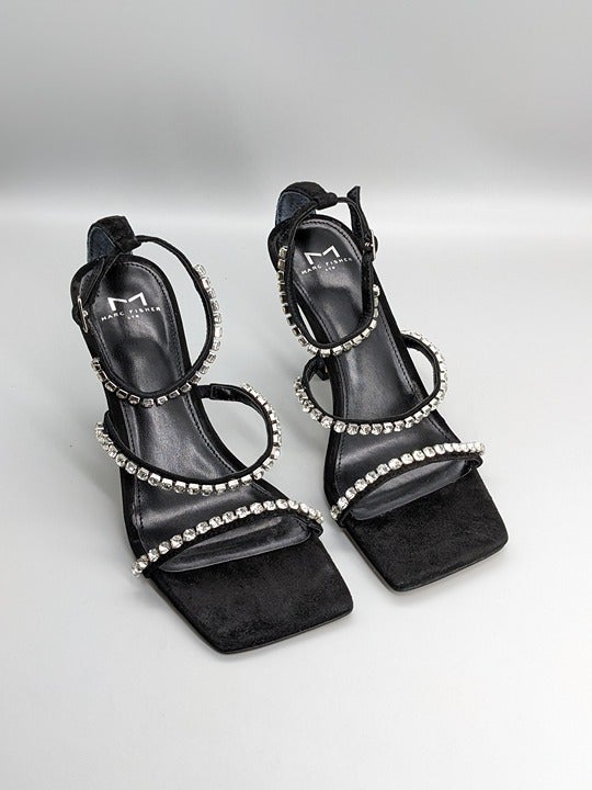 Marc Fisher Dezzi Rhinestone Ankle Strap Sandal Black Size 6.5 M (MSRP $150)