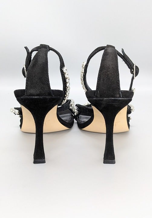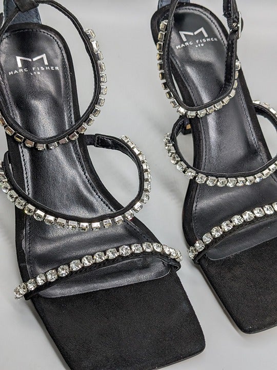 Marc Fisher Women's Dezzi Rhinestone Ankle Strap Sandal Black Suede Size 6.5 M