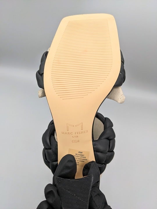 Marc Fisher Hammy Braided Leather Heeled Sandals Black Size 6.5 (MSRP $165)