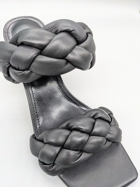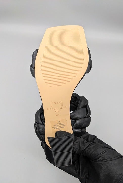Marc Fisher Hammy Braided Leather Heeled Sandals Black Size 6 M (MSRP $165)