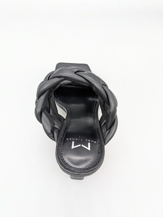 Marc Fisher Hammy Braided Leather Heeled Sandals Black Size 6 M