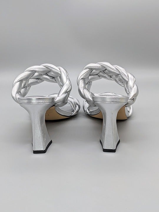 Marc Fisher Hammy Braided Leather Heeled Sandals Silver Size 6.5 (MSRP $165)