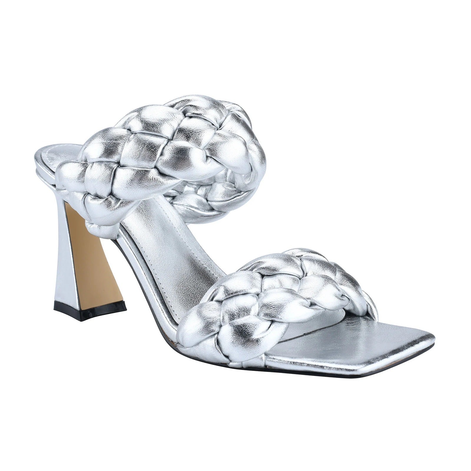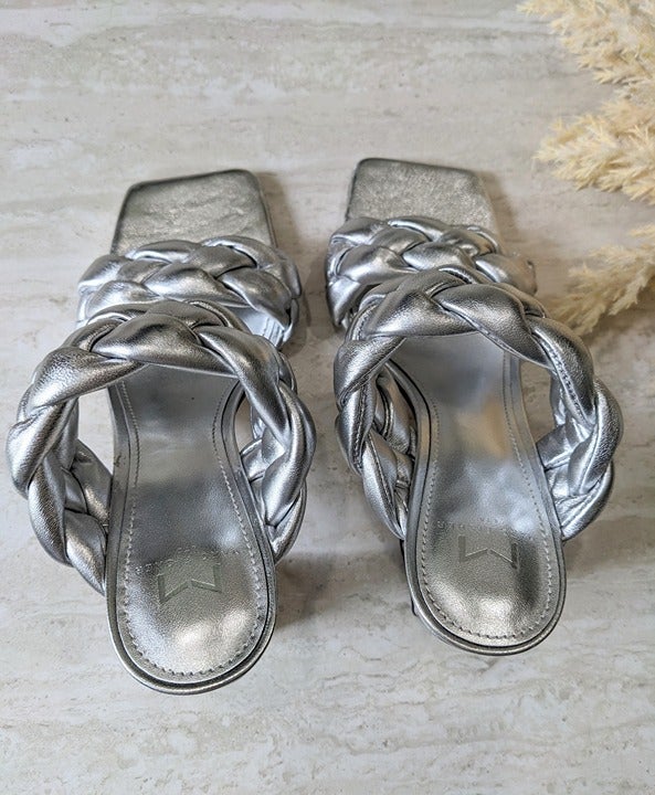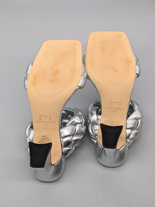 Marc Fisher Hammy Braided Leather Heeled Sandals Silver Size 6.5 M