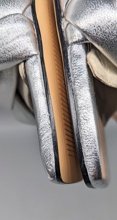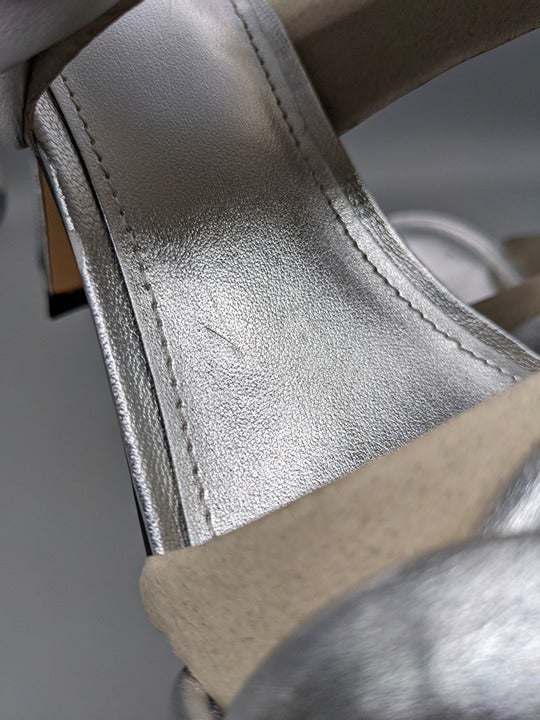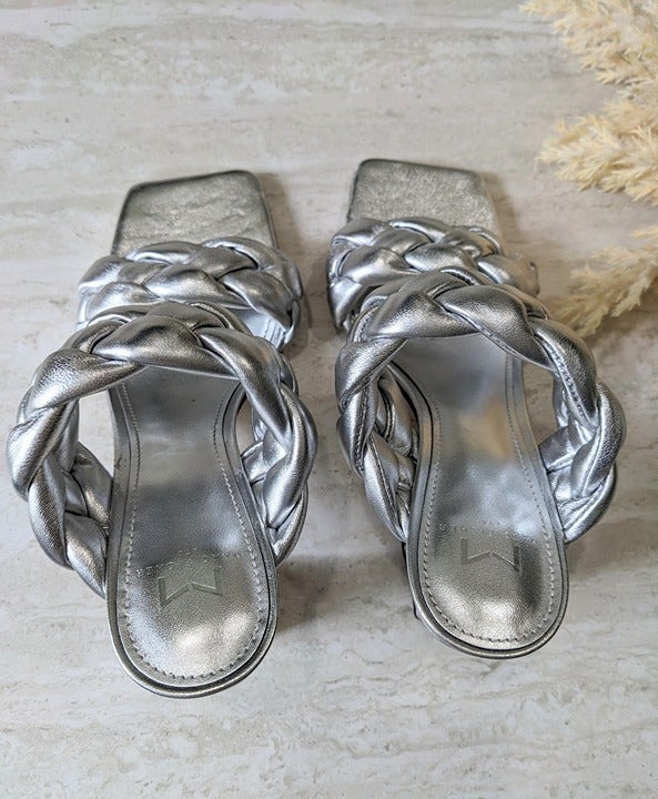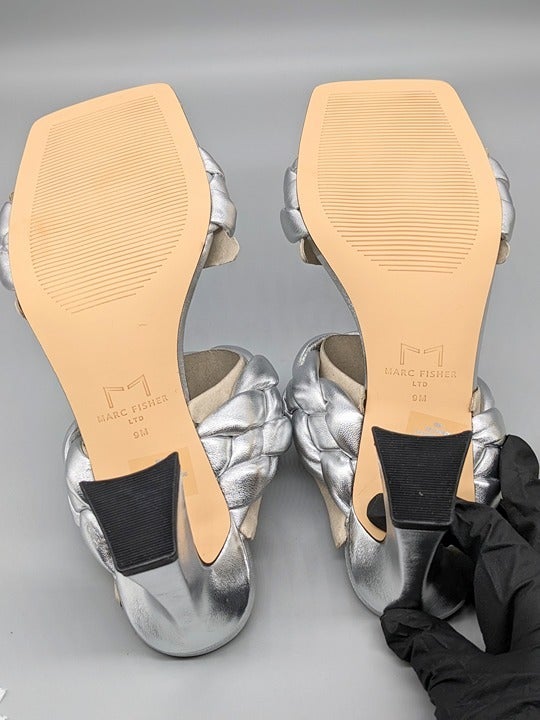 Marc Fisher Hammy Braided Leather Heeled Sandals Silver Size 9 M