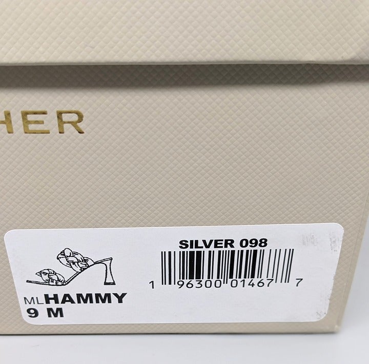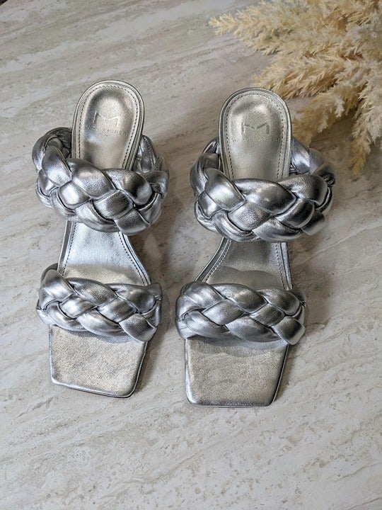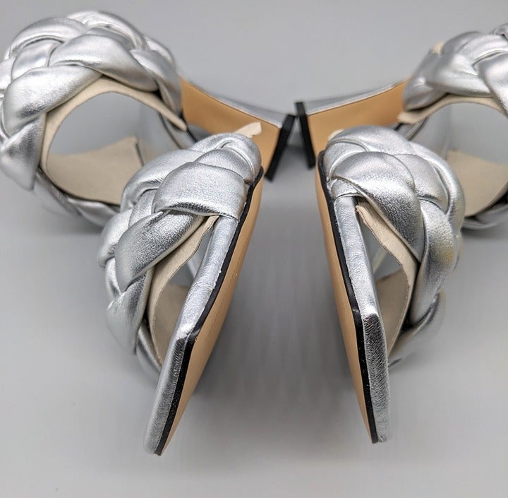 Marc Fisher Hammy Braided Leather Heeled Sandals Silver Size 9 M (MSRP $165)