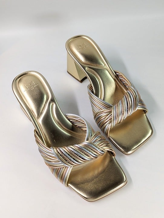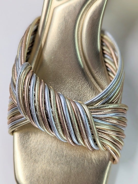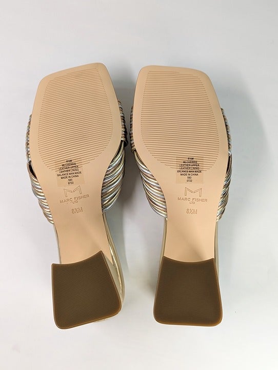 Marc Fisher LTD Cherrie Women's Gold Leather Slide Sandal Size 8.5 (MSRP $150)