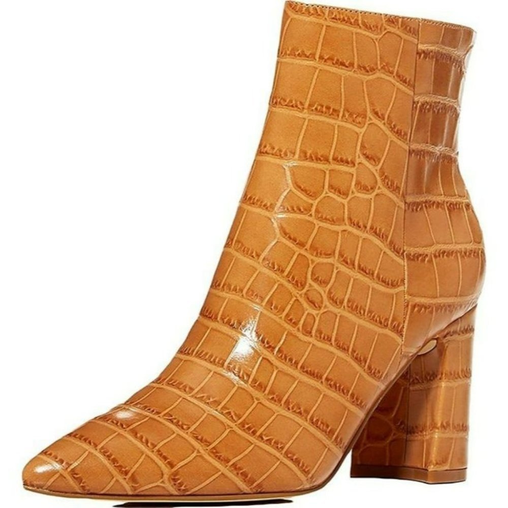 Marc Fisher LTD Womens Daith Leather Embossed Dress Boots Tan Size 5.5 M (MSRP $210)