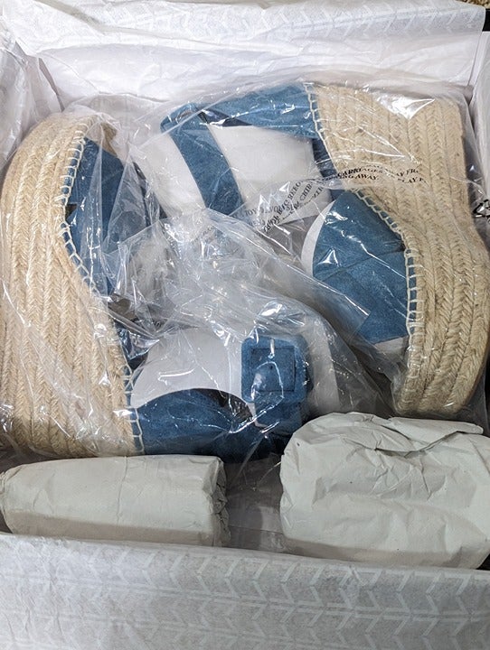 3.94" espadrille wedge heel, 1.97" platform, feels like 1.97" heel