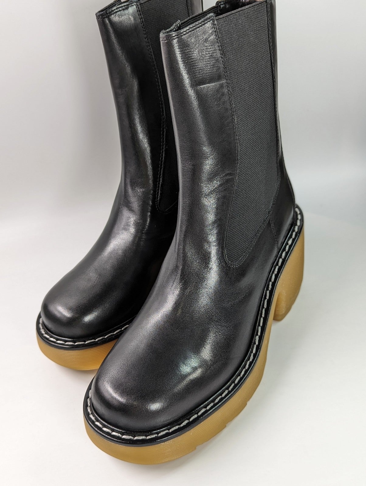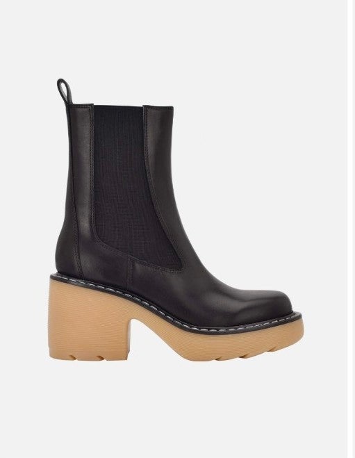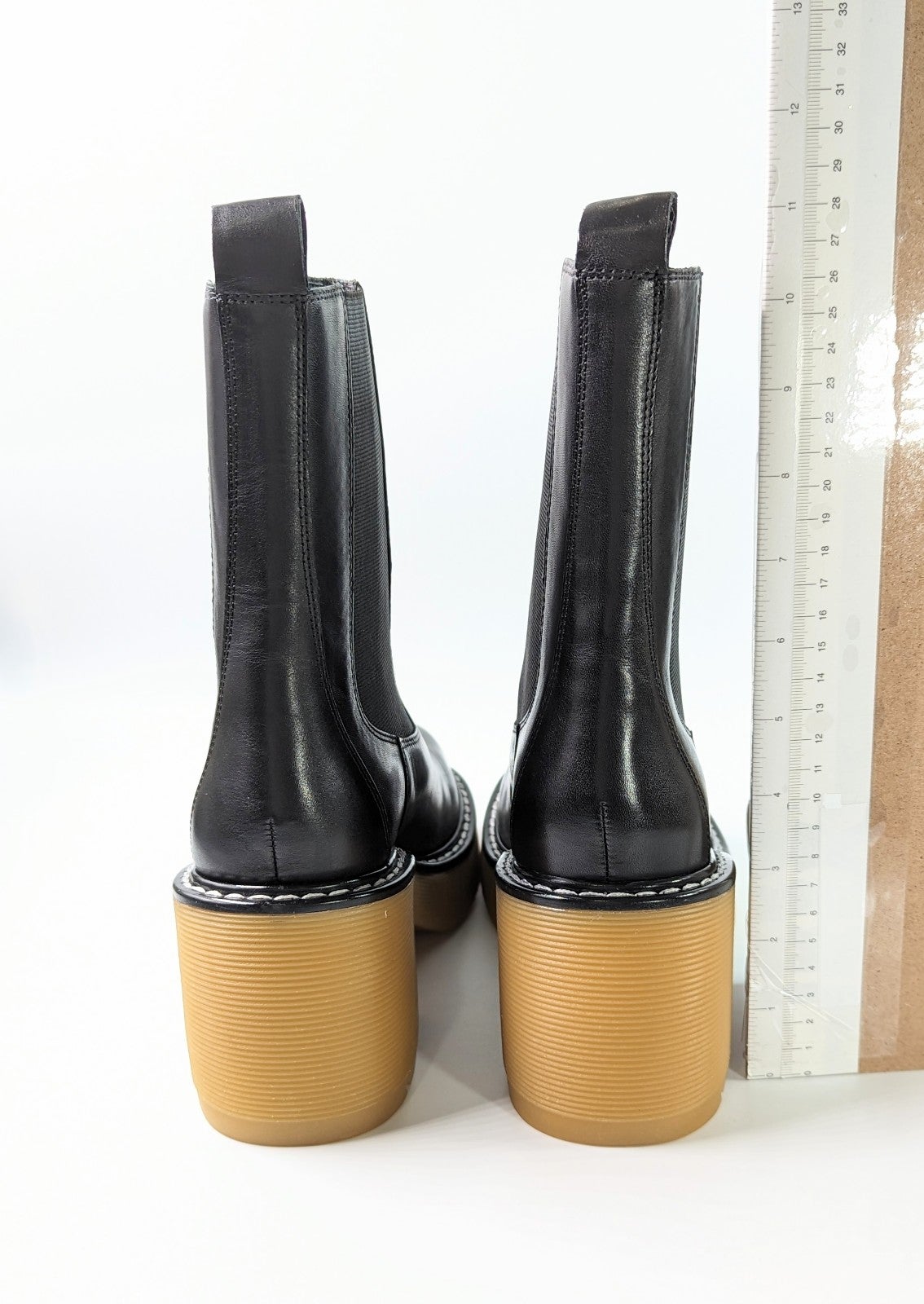 Marc Fisher Women's Fredy Black Leather Lug Sole Boot Size 8 M (MSRP $229)