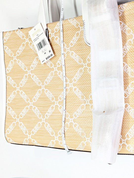Michael Kors Gigi Logo Large Grab Tote with Shoulder Strap in Natural/Optic Whit