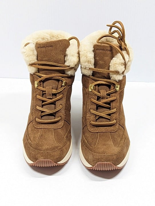 Michael Kors Women's Liv Wedge Booties Dark Caramel Suede Size 9.5 M