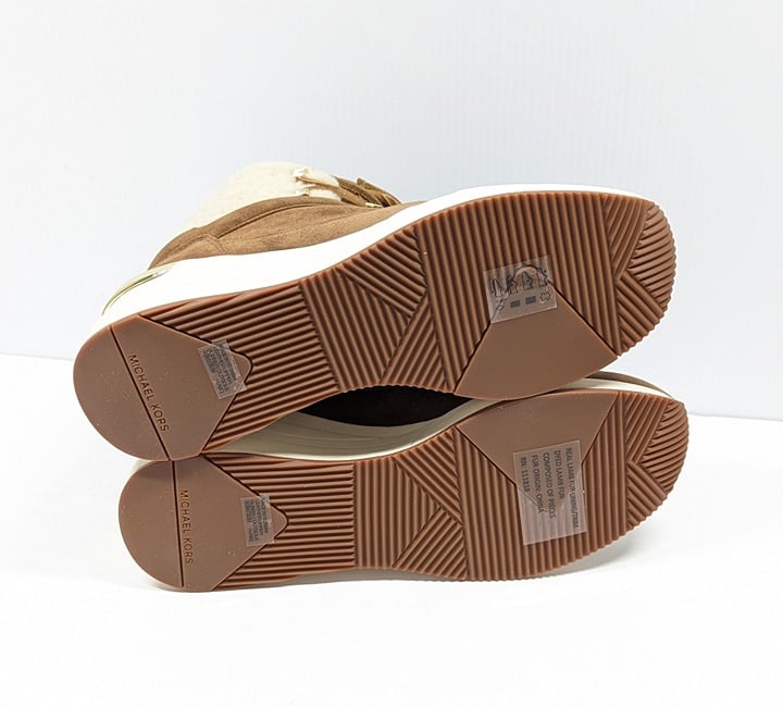 Michael Kors Women's Liv Wedge Booties Dark Caramel Suede Size 9.5 M (MSRP $250)