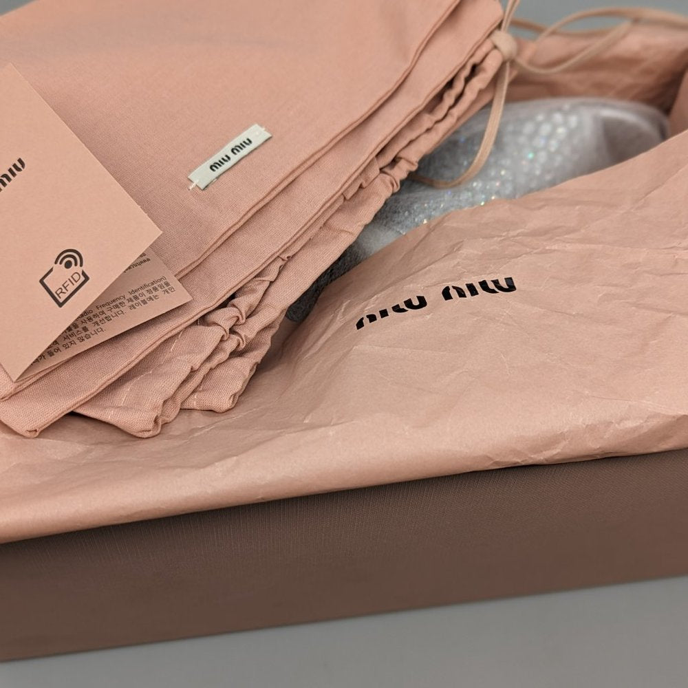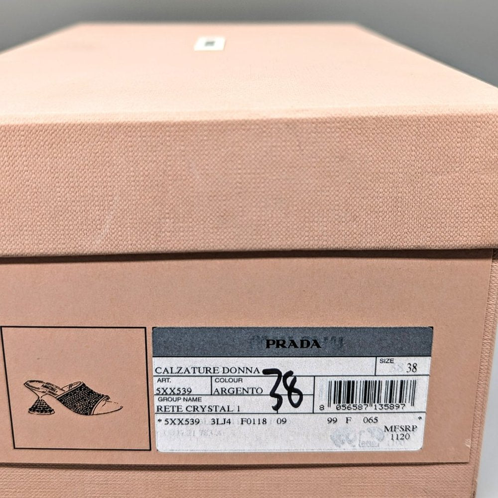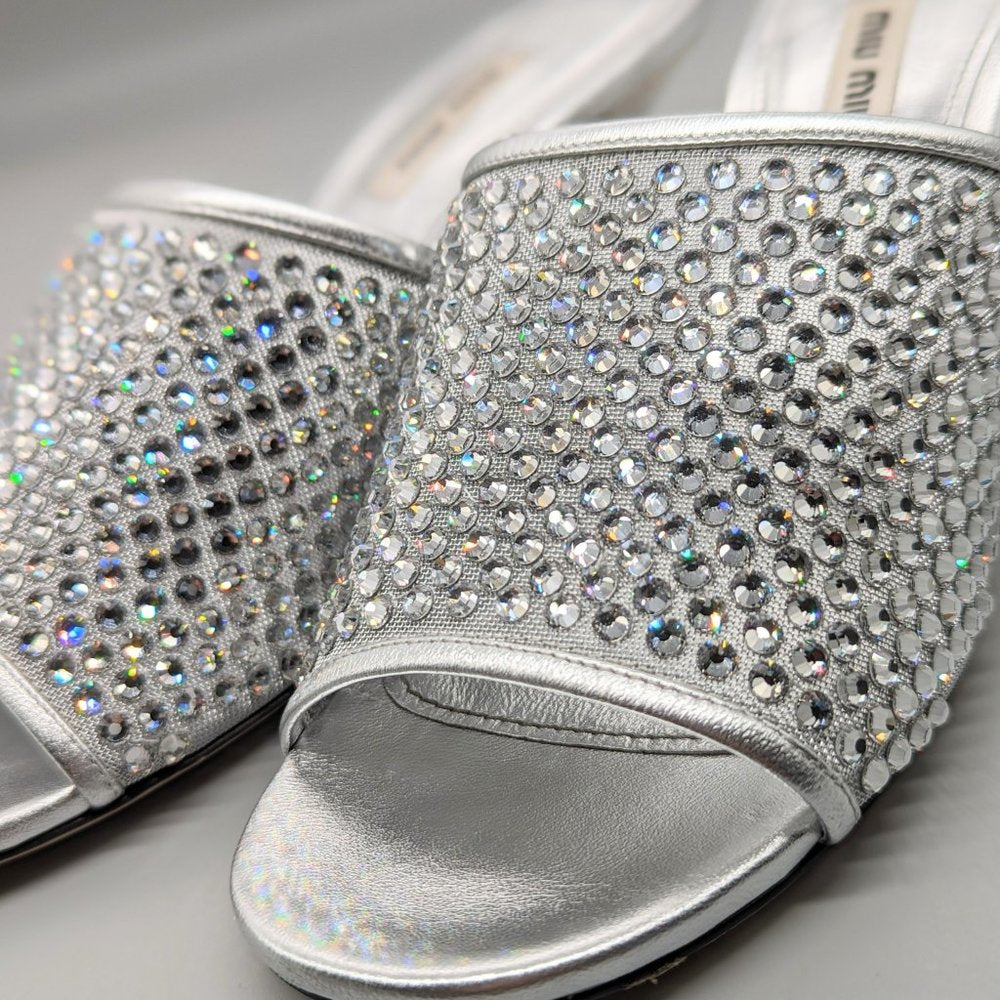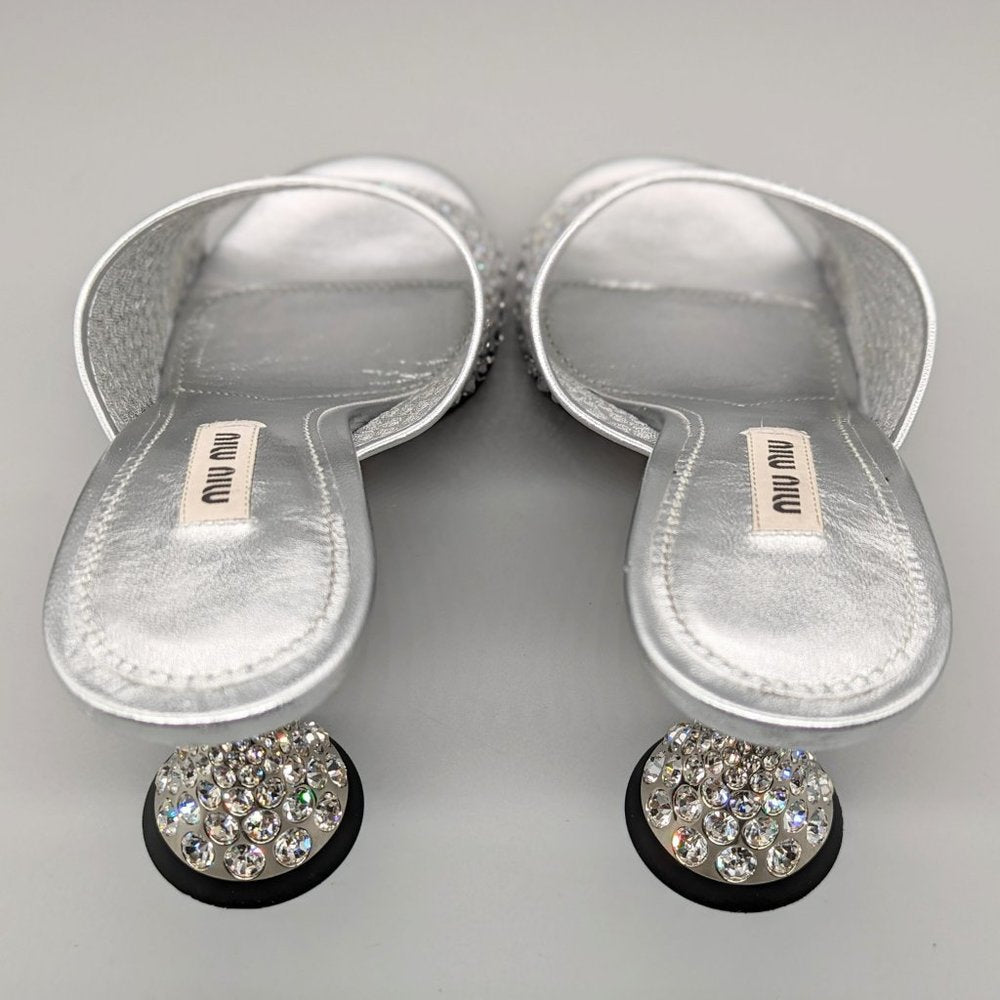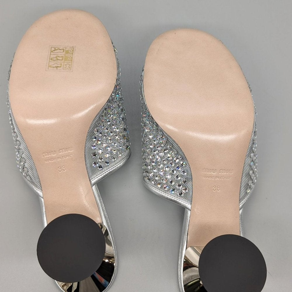 Miu Miu Women's Embellished Slide Heel Sandals Argento Size 38 (MSRP $1,200)