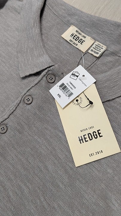Never Lose HEDGE Men's Long Sleeve Cotton Polo Shirt Grey Size XXL
