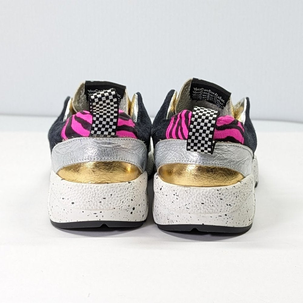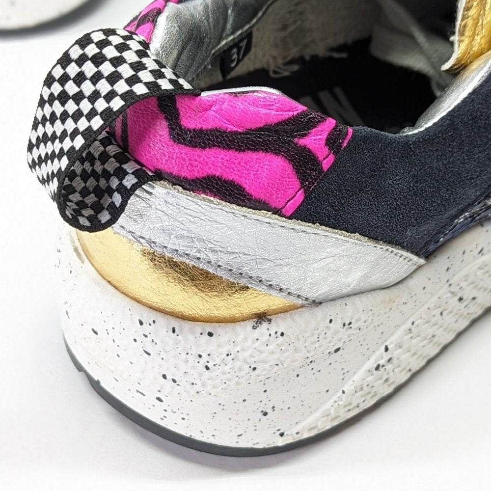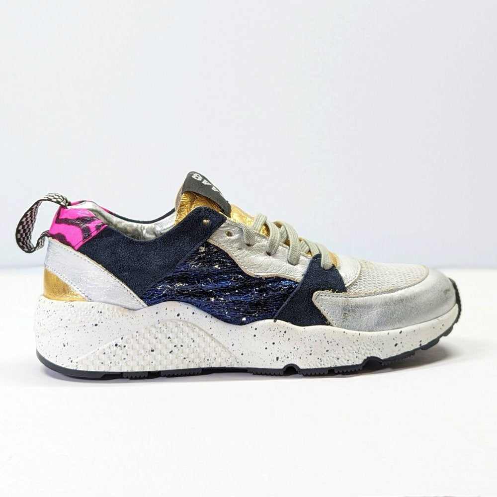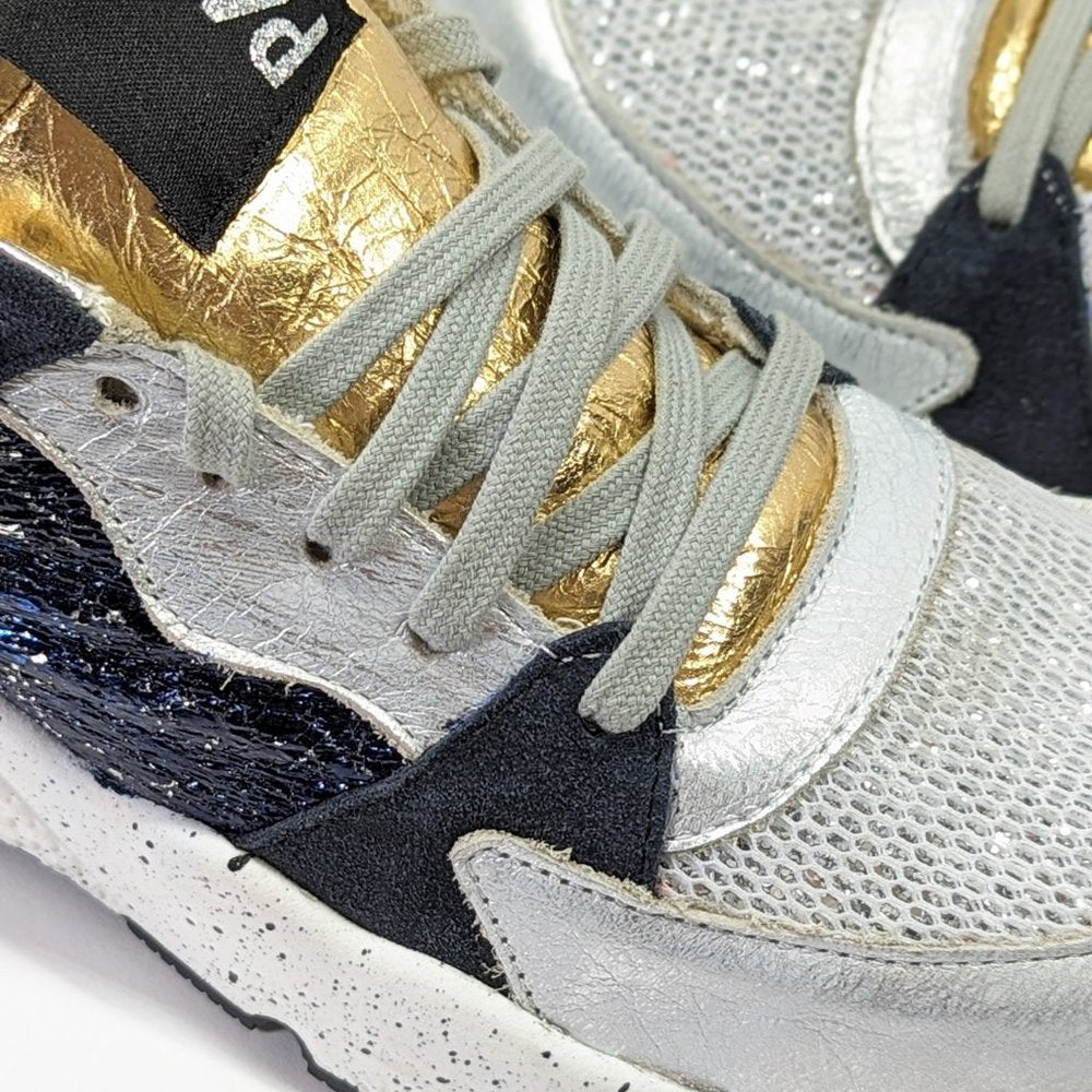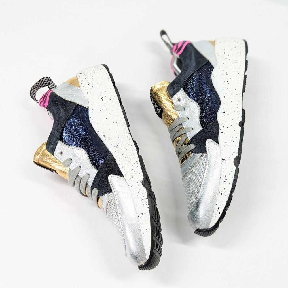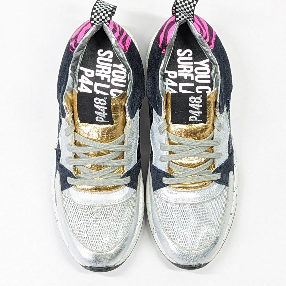 P448 Women's Alex Lace-Up Metallic Leather Sneakers Saturn Size 37 EU