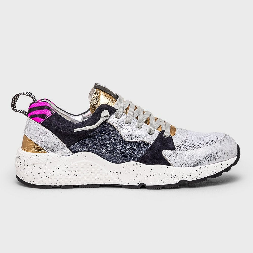 Crackled, metallic, patent and nubuck leather details
