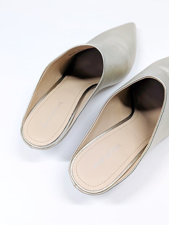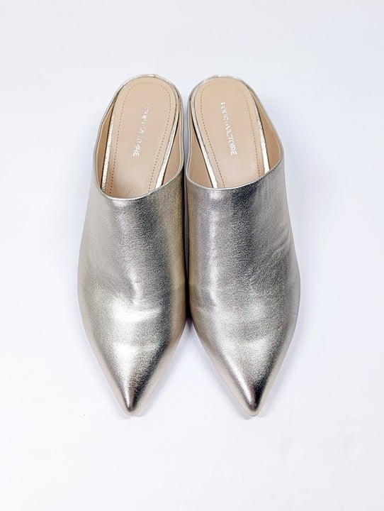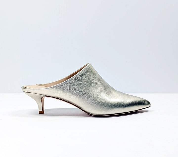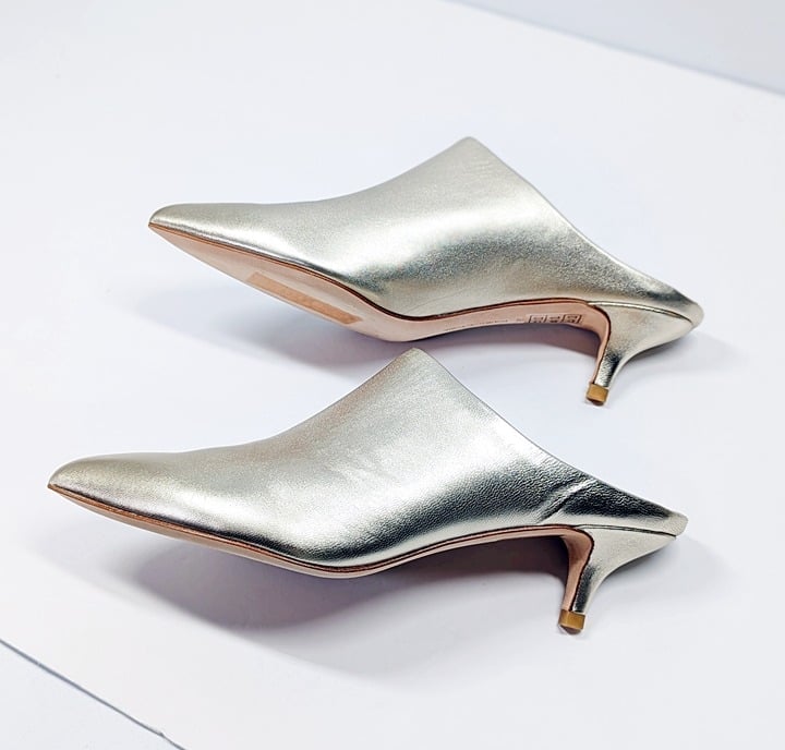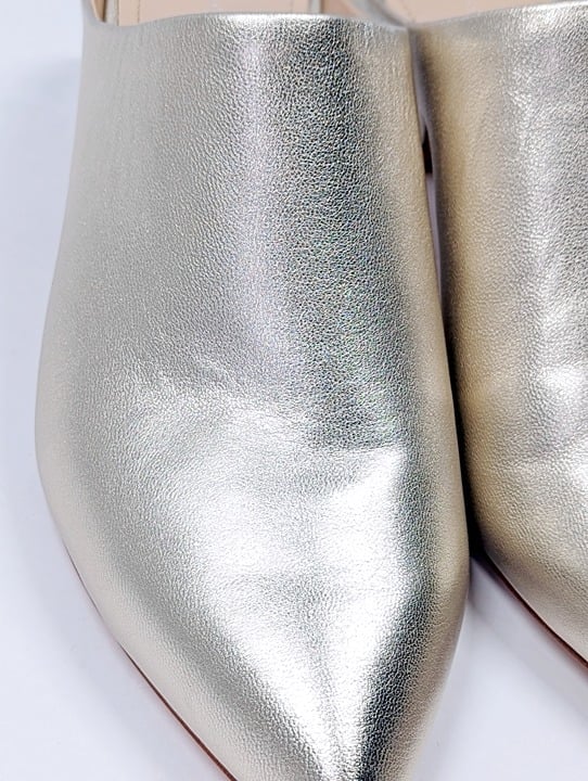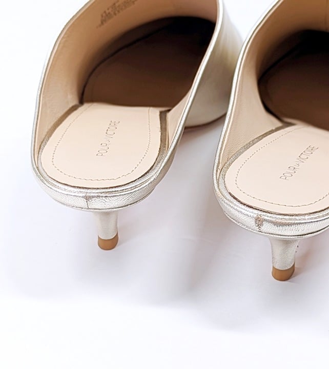 Pour La Victoire Women's Korrine Leather Kitten Heel Pointed Toe Mules Champagne Size 9.5 M