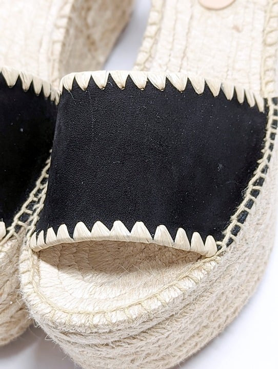 Pour La Victoire Women's Ria Black Suede & Raffia Espadrille Platform Wedge Sandals Size 9.5 M