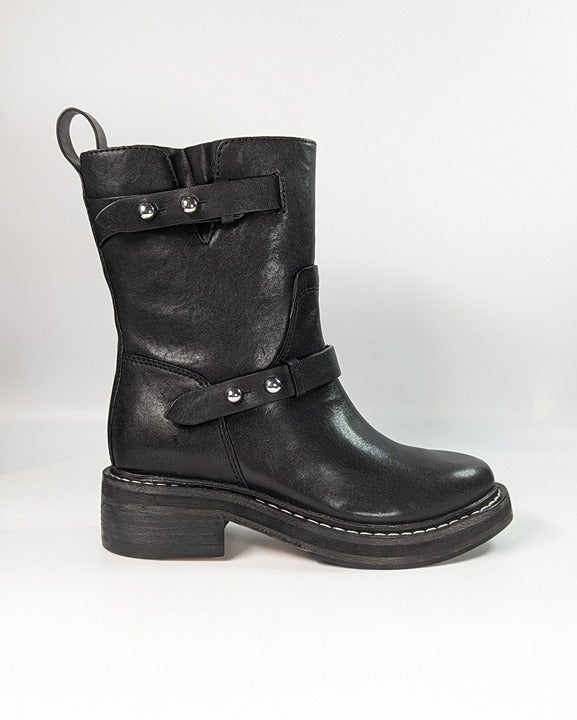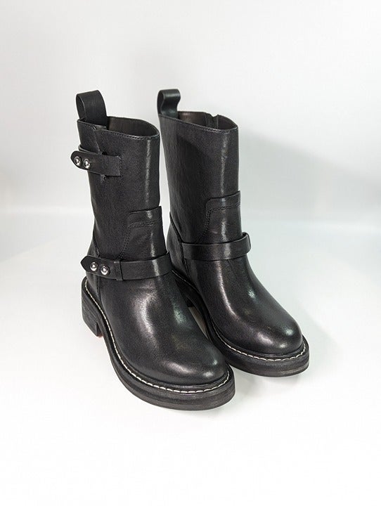 Rag & Bone Women's RB Moto Studded Pull On Boots Black Leather Size 6.5 US