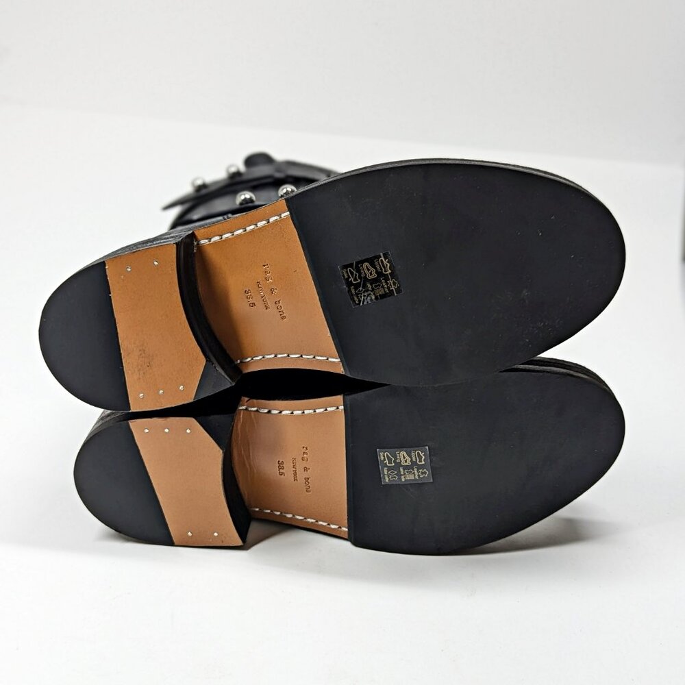 Rag & Bone Women's RB Moto Studded Pull On Boots Black Leather Size 8.5 US / 38.5 EU