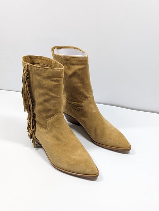 Rebecca Minkoff Women's Krissa Suede Fringe Low-Heel Boots Size 8.5 (MSRP $198)
