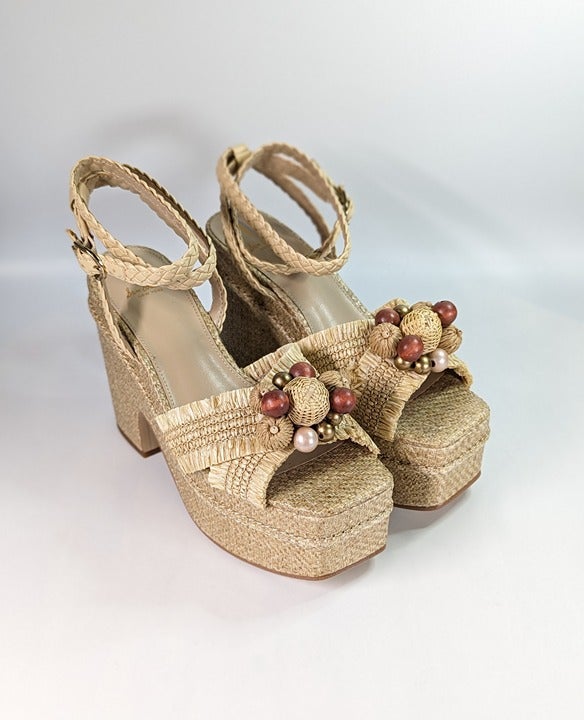 Sam Edelman Women's Tate Woven Raffia Ankle-Strap Platform Size 9.5 (MSRP $170)
