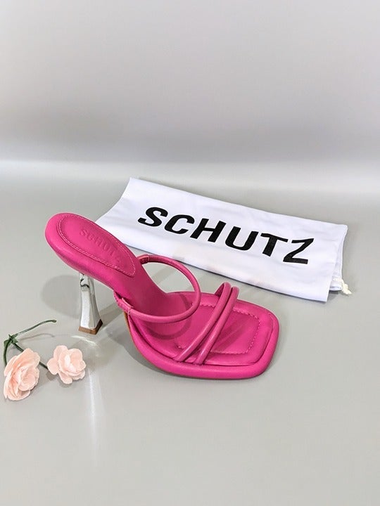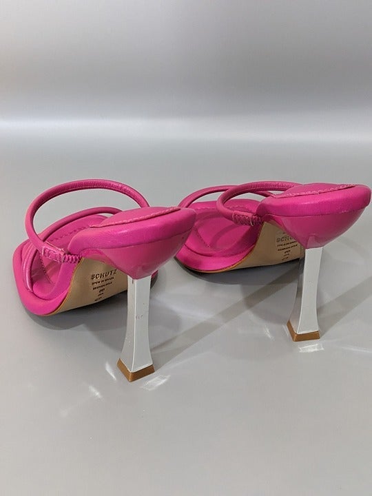 SCHUTZ Agatha Women's Leather Heel Sandals Hot Pink Color Size 6 M