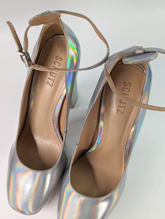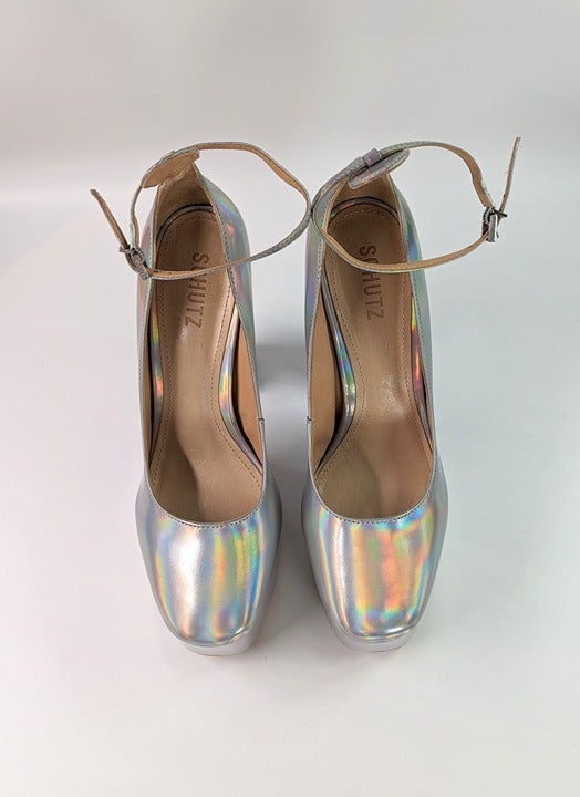 Schutz Renee Women's Ankle Strap Platform Pump Hologram Size 8.5 B (MSRP $158)