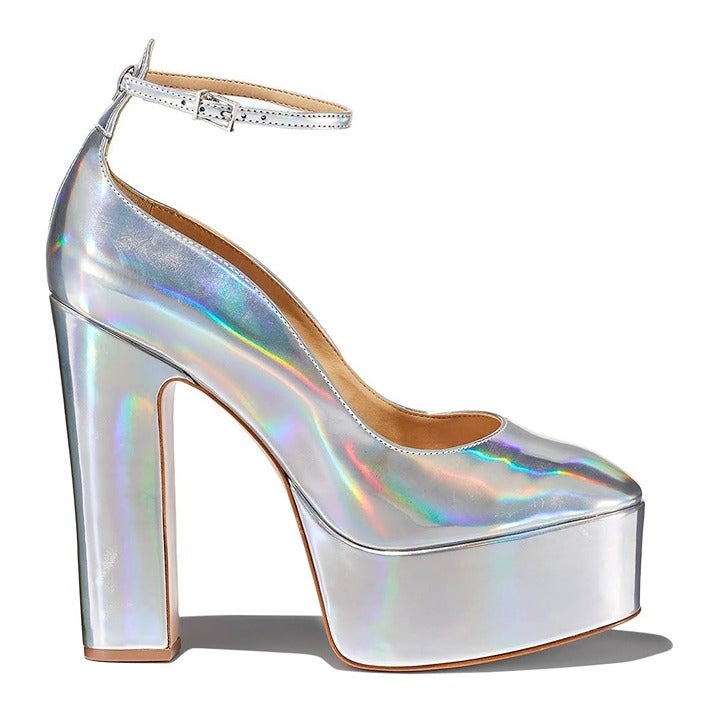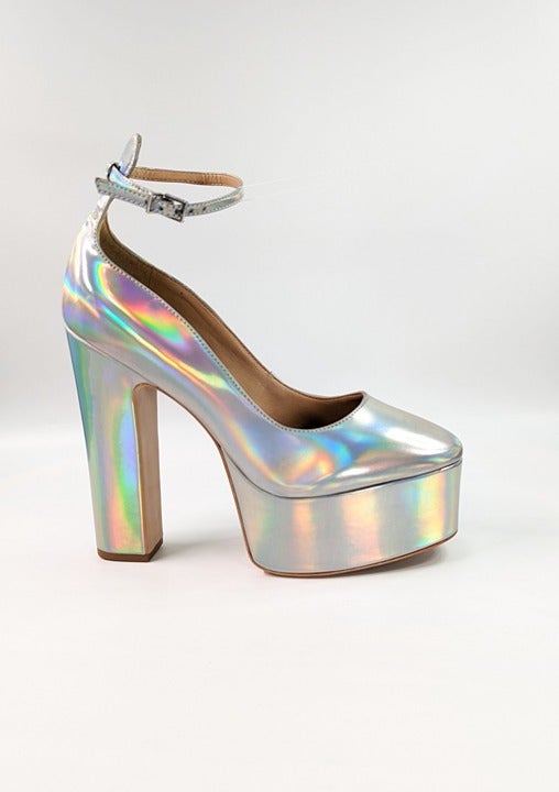 Schutz Renee Women's Ankle Strap Platform Pump Hologram Size 8.5 B