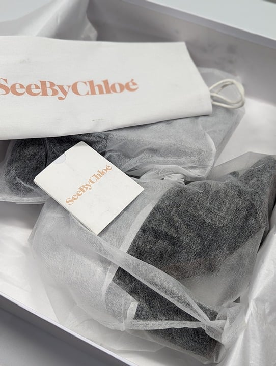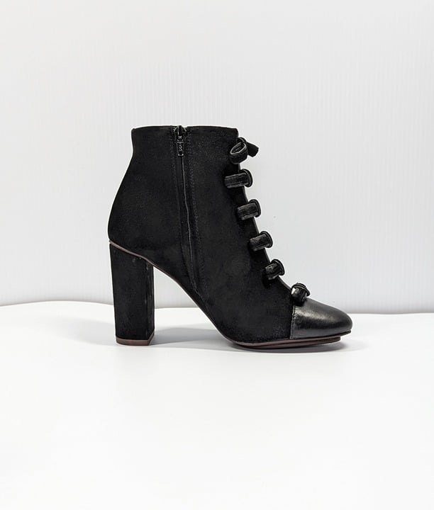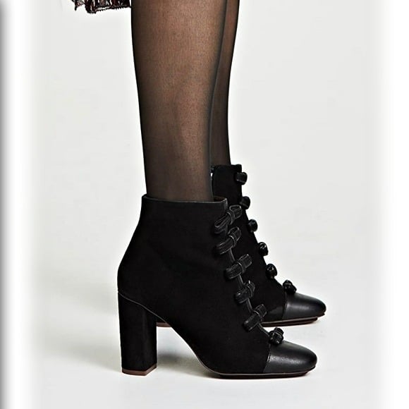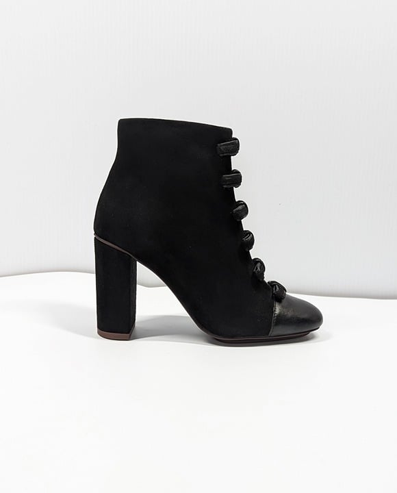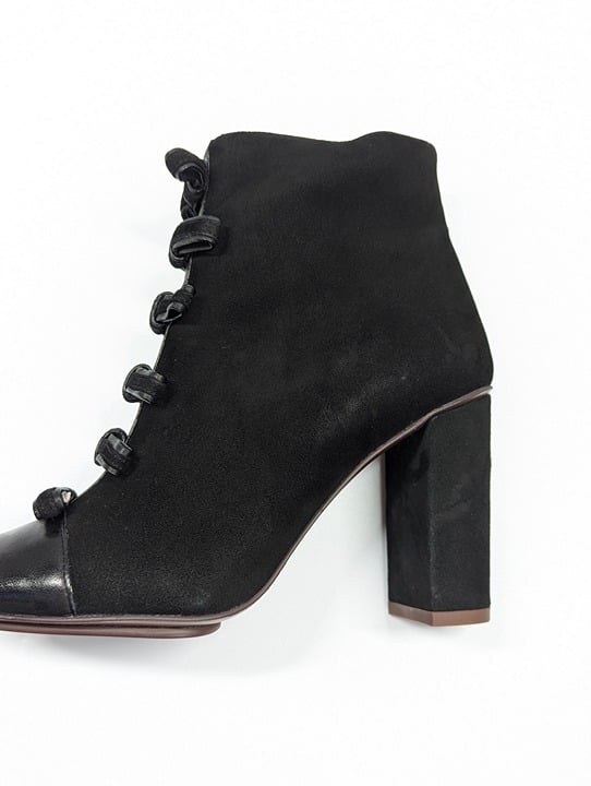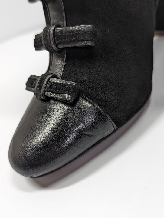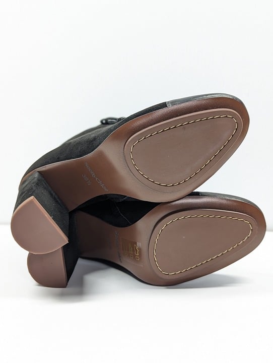 See By Chloé Gisele Black Bow Almond Toe Suede Heel Boots Size 36.5 EU