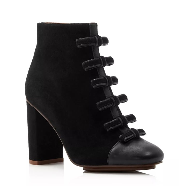 See By Chloé Gisele Black Bow Almond Toe Suede Heel Boots Size 36.5 (MSRP $445)