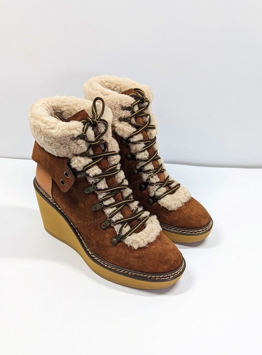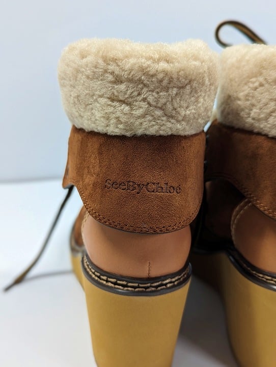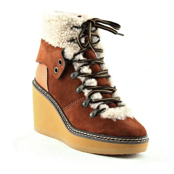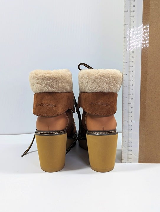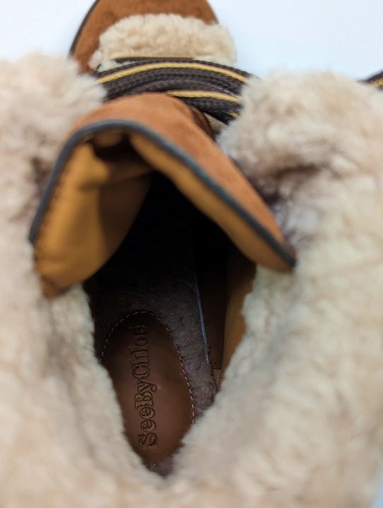 See By Chloé Women's Eileen Suede Shearling Hiking Boot Size 40 EU