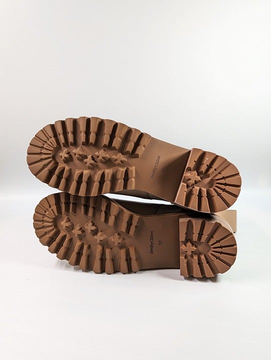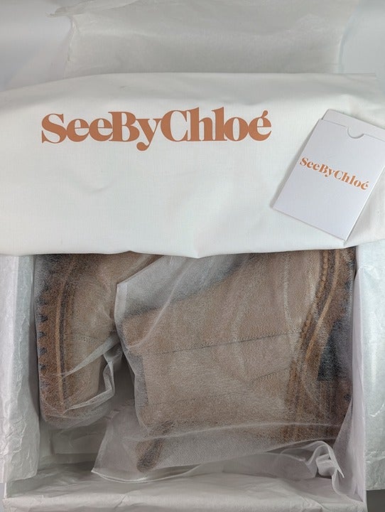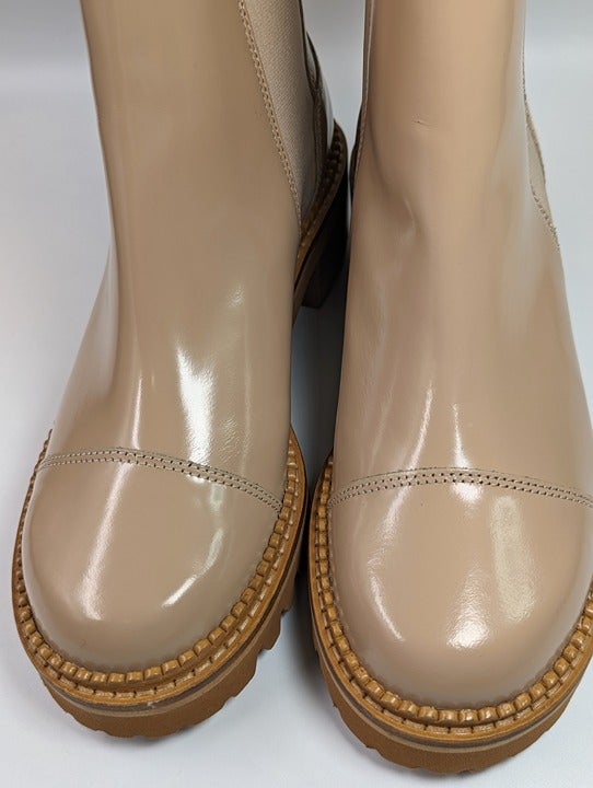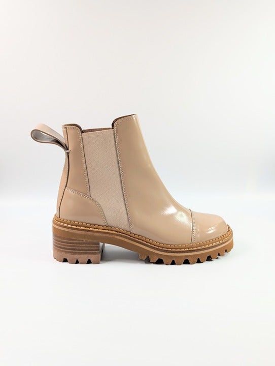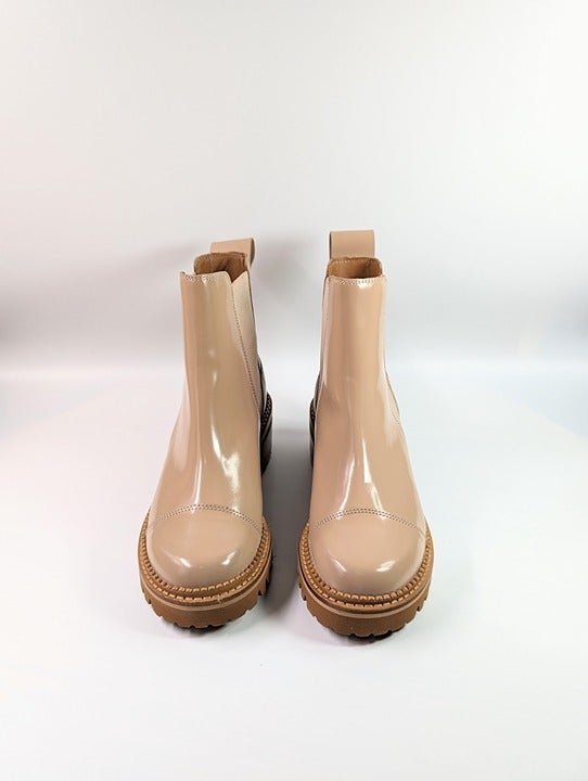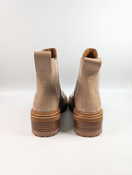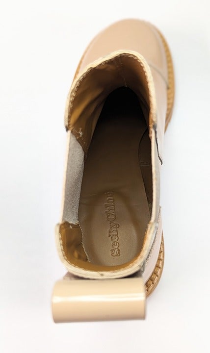 See By Chloé Women's Mallory Leather Chelsea Boots Beige Size 37 EU (MSRP $475)