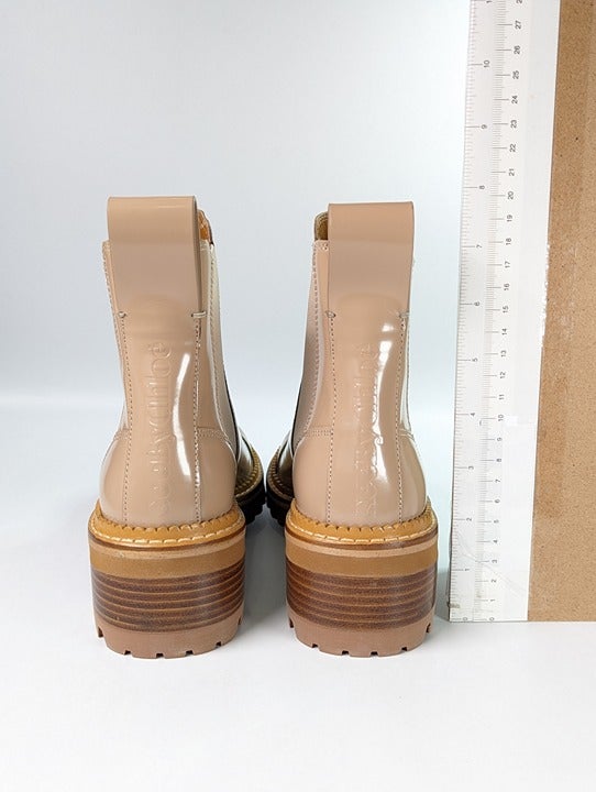 See By Chloé Women's Mallory Leather Chelsea Boots Beige Size 37 EU MSRP $475