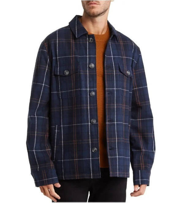 Slate & Stone Men's Blue Plaid Flannel Shirt Jacket Size M (MSRP $398)