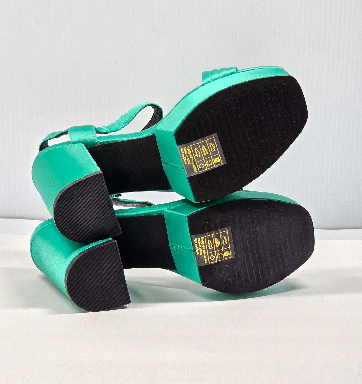 Sol Sana Women's Cathy Green Satin Platform Sandals Size 36 EU (MSRP $165)