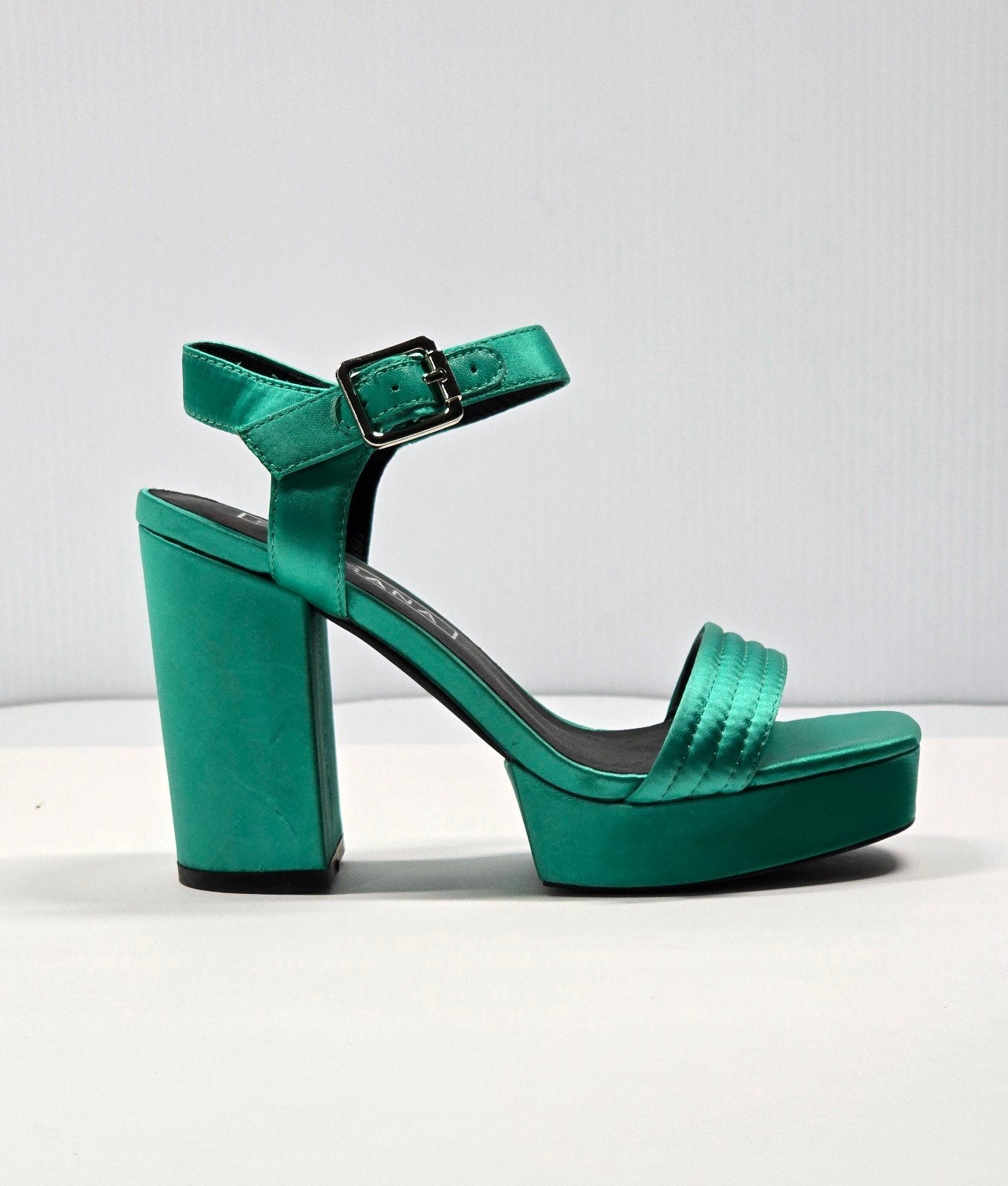 Sol Sana Women's Cathy Green Satin Platform Sandals Size 36 EU