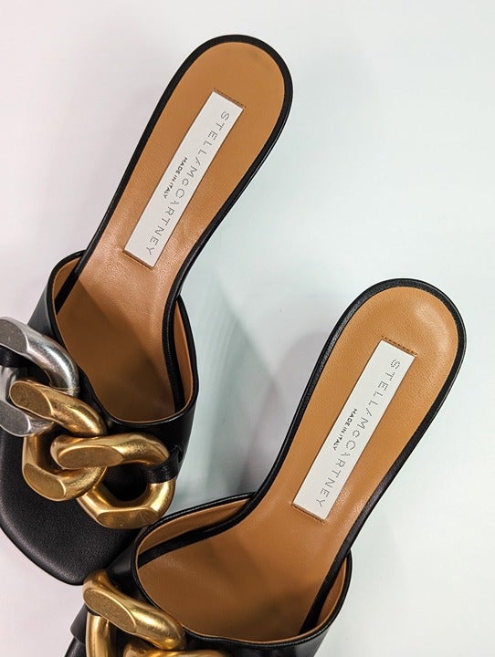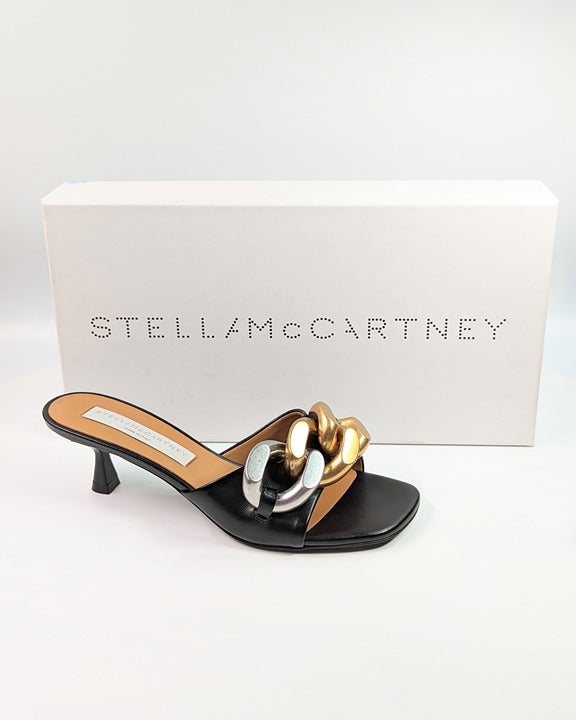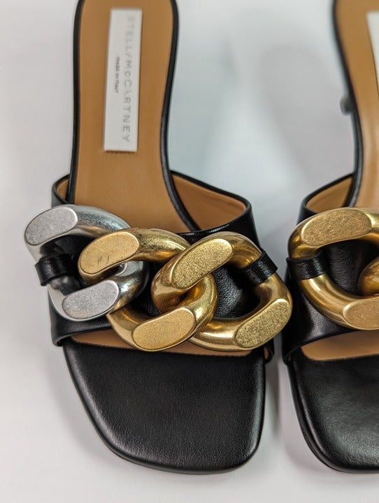 Stella McCartney Falabella Women's Chain Mules Sandals Black Size 36 EU