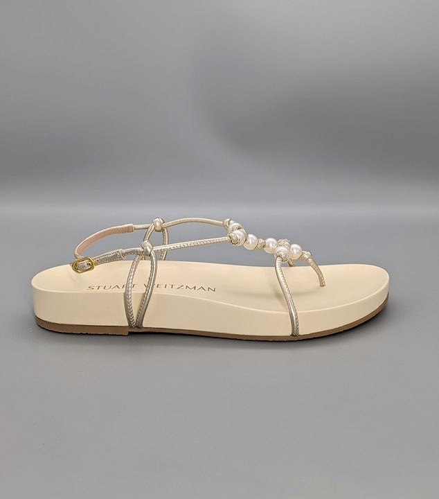 STUART WEITZMAN Women's Pearl Knot Metallic Leather Flat Sandals Size 7 B