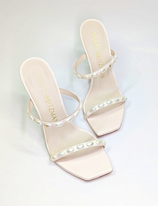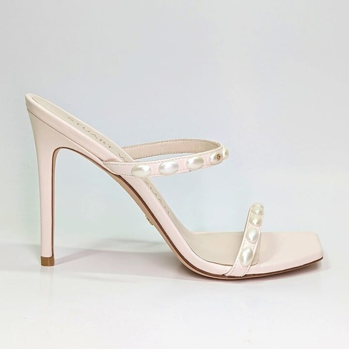 The Aleena, presented here in pearl-embellished leather, continues to be one of Stuart Weitzman's most-popular styles to date. Inspired by their iconic Nudist style, it features the same 100mm stiletto alongside an updated yet equally understated take on their signature double-strap design.