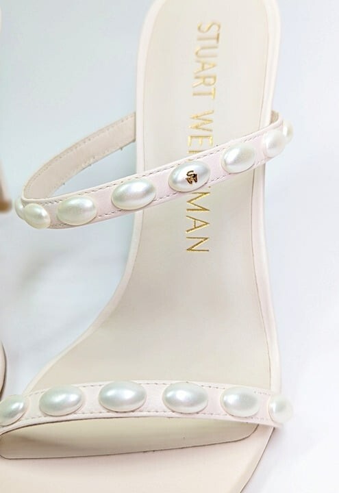 Stuart Weitzman Women's Aleena Pearlita 100 Heel Sandals Size 38.5 MSRP $525