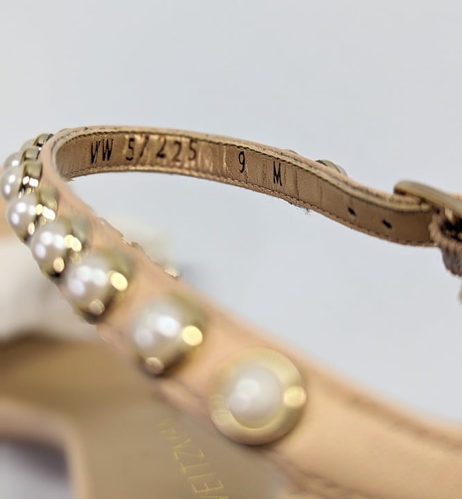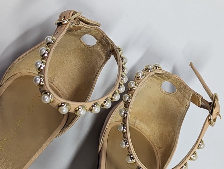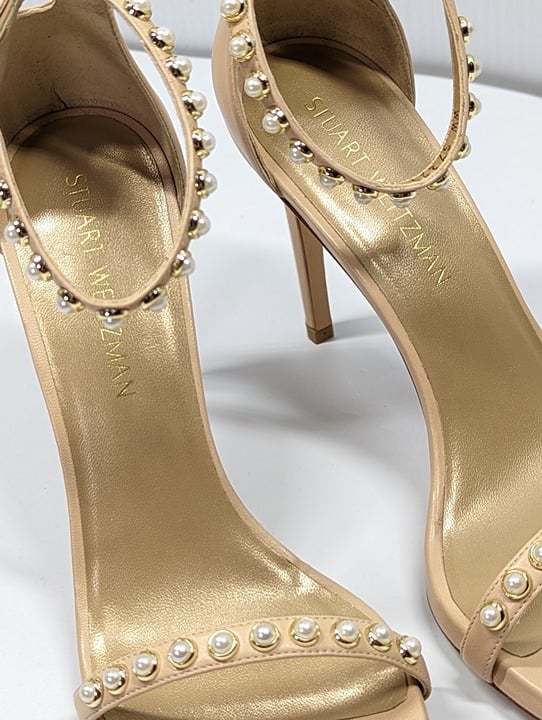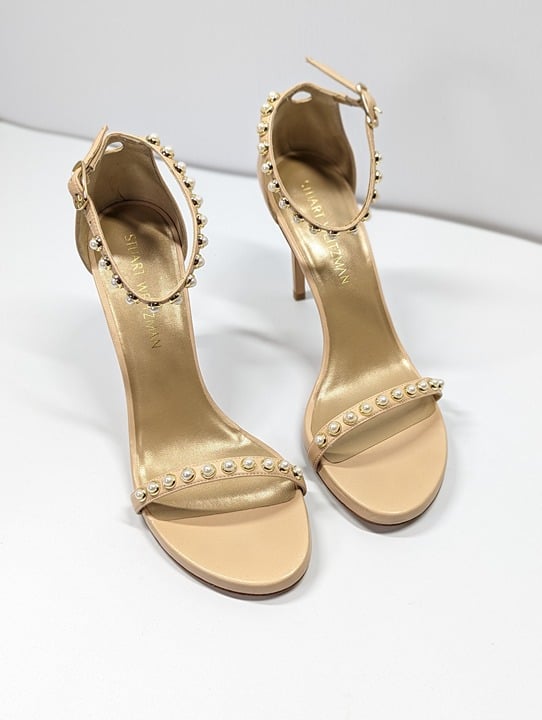 Stuart Weitzman Women's Nudist Pearls Ankle Strap Sandals Size 9 (MSRP $455)
