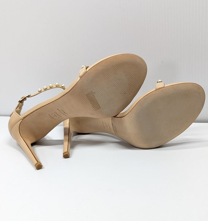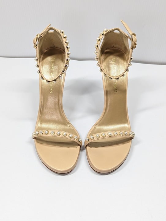 Stuart Weitzman Women's Nudist Pearls Embellished Ankle Strap Sandals Size 9