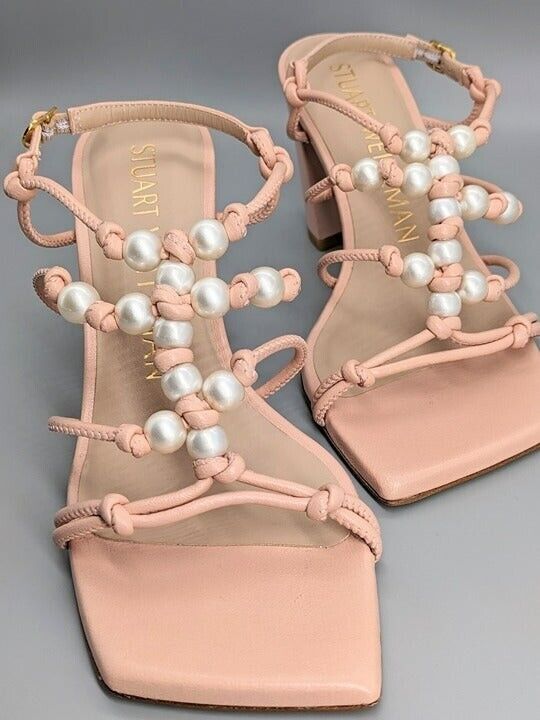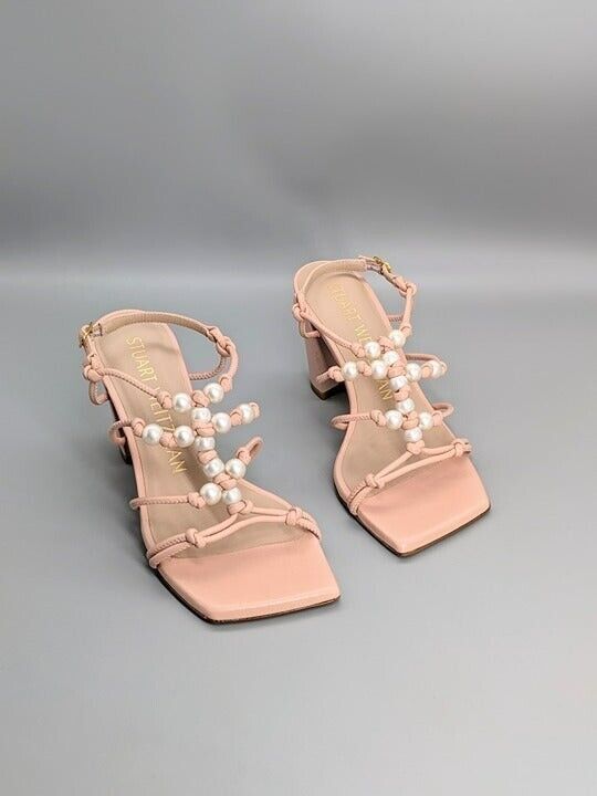 Stuart Weitzman Women's Pearl Knot Block-Heel Sandals Size 6.5 B (MSRP $495)
