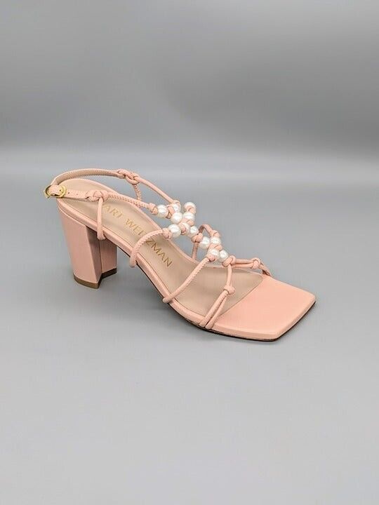 Stuart Weitzman Women's Faux Pearl Knot Nappa Leather Block-Heel Sandals Size 8 B
