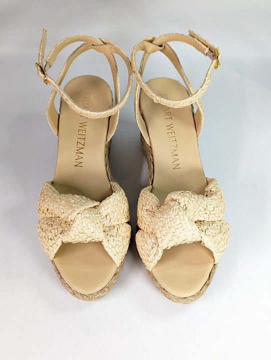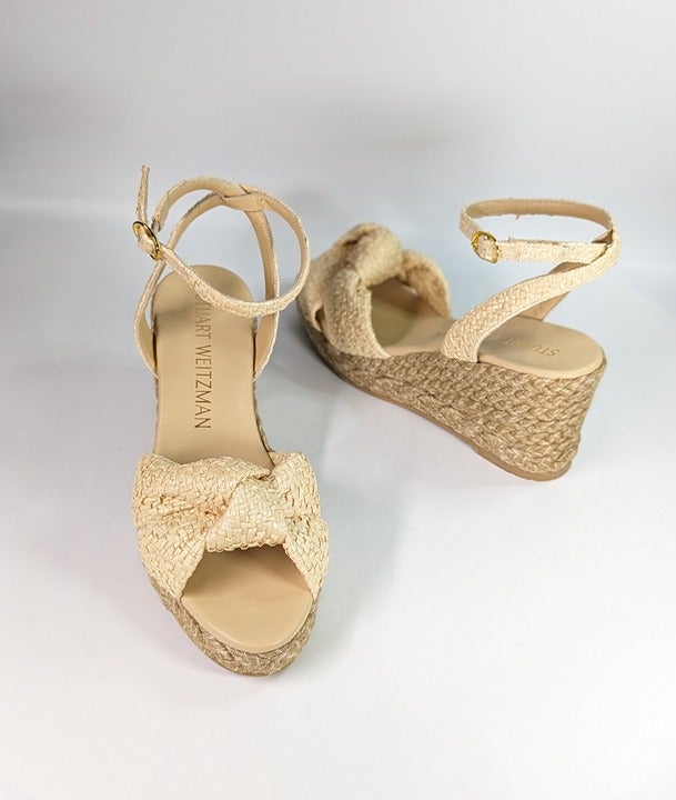 Stuart Weitzman Women's Playa Natural Espadrille Knot Wedge Size 10 B
