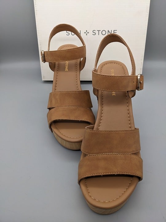 Sun + Stone Delestep Women's Dress Platform Sandals Beige Size 9 M