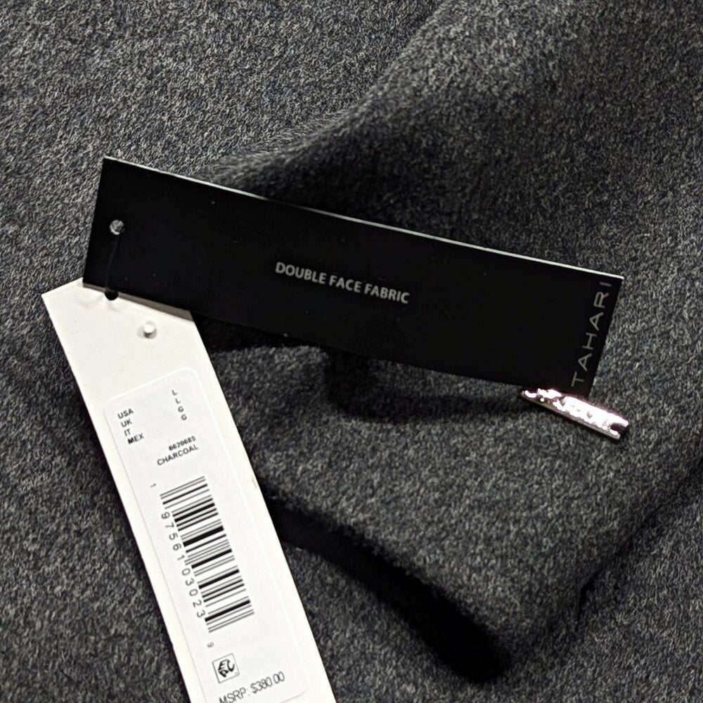 Tahari Women's Charcoal Faux-Leather-Trim Removable Belted Wrap Coat Size L