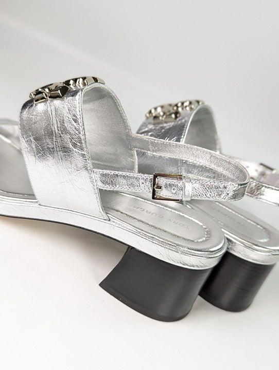 Tory Burch Women's Eleanor Metallic Strappy Slingback Sandals Size 9 (MSRP $348)