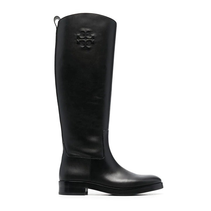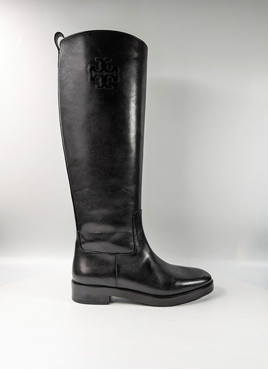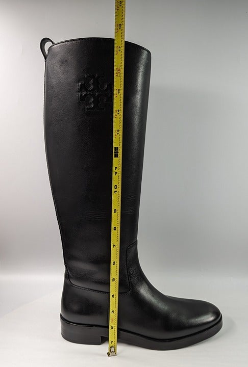 Tory Burch Women's The Riding Boot Milano Mezzo Calf Logo-Embossed Black Size 6
